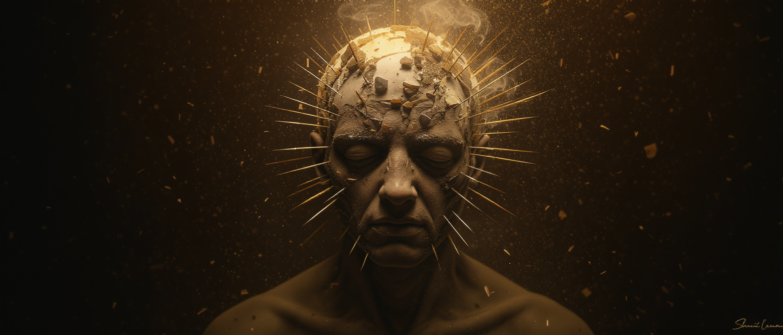 - AI Prompt: “Decaying organic matter transforming into black sand, memento mori aesthetic, Caravaggio lighting, not grotesque but honest, textural erosion”